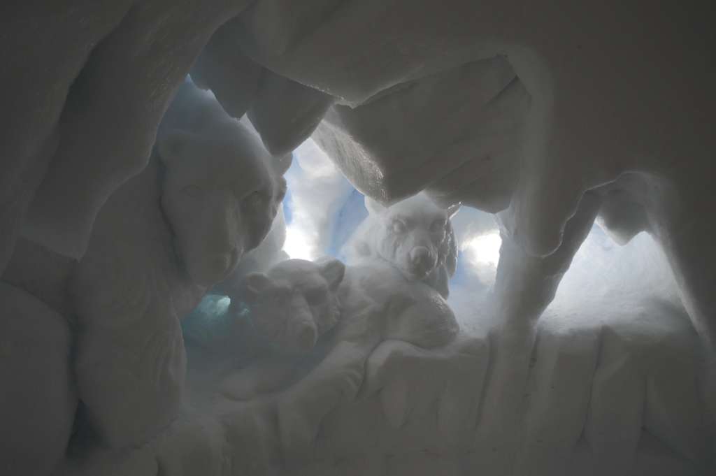 Cei care vor să și doarmă, literlamente, în gheață, pot face asta într-unul din cele trei igluri amenajate în apropierea sălii de concerte. Dormitoarele de lux au fost amenajate cu mobilă sculptată tot în gheață și au tematică diferită: Artic Room păstrează un design ce amintește de peisaje arctice cu urși polari și stalactite, Frost Room este un dormitor cu butoaie de lemn înconjurate de căprioare, iar Chalet Room vine cu un decor tipic pentru o cabană de munte, cu șemineu. Lângă, la Capanna Presena, turiștii se pot relaxa la un spa cu jacuzzi, sauna și baie turcească din care se poate admira panorama ghețarului luminată doar de lună și stele.