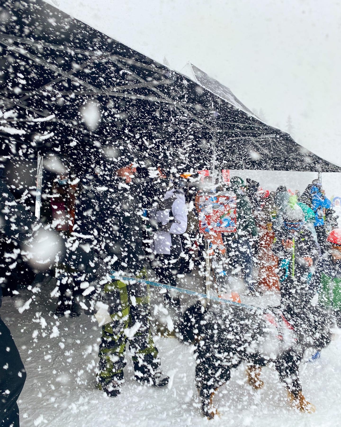 Duminică a nins atât de abundent, încât abia vedeai în fața ochilor, așa că pe lângă bulgăreala cu premii, am dat startul unei bulgăreli tradiționale. A fost care pe care! Dar bucuria cea mai mare a fost să ne reîntâlnim cu prietenii noștri de la Visit Predeal și cu gașca de snowboarderi care an de an vin la Winter Tour. Am făcut pentru ei un kicker special în spatele cortului, iar mai apoi ne-am delectat urmărindu-le săriturile, pofta de viață și bucuria pură de a sări cu placa pe zăpadă. Back to Basics!